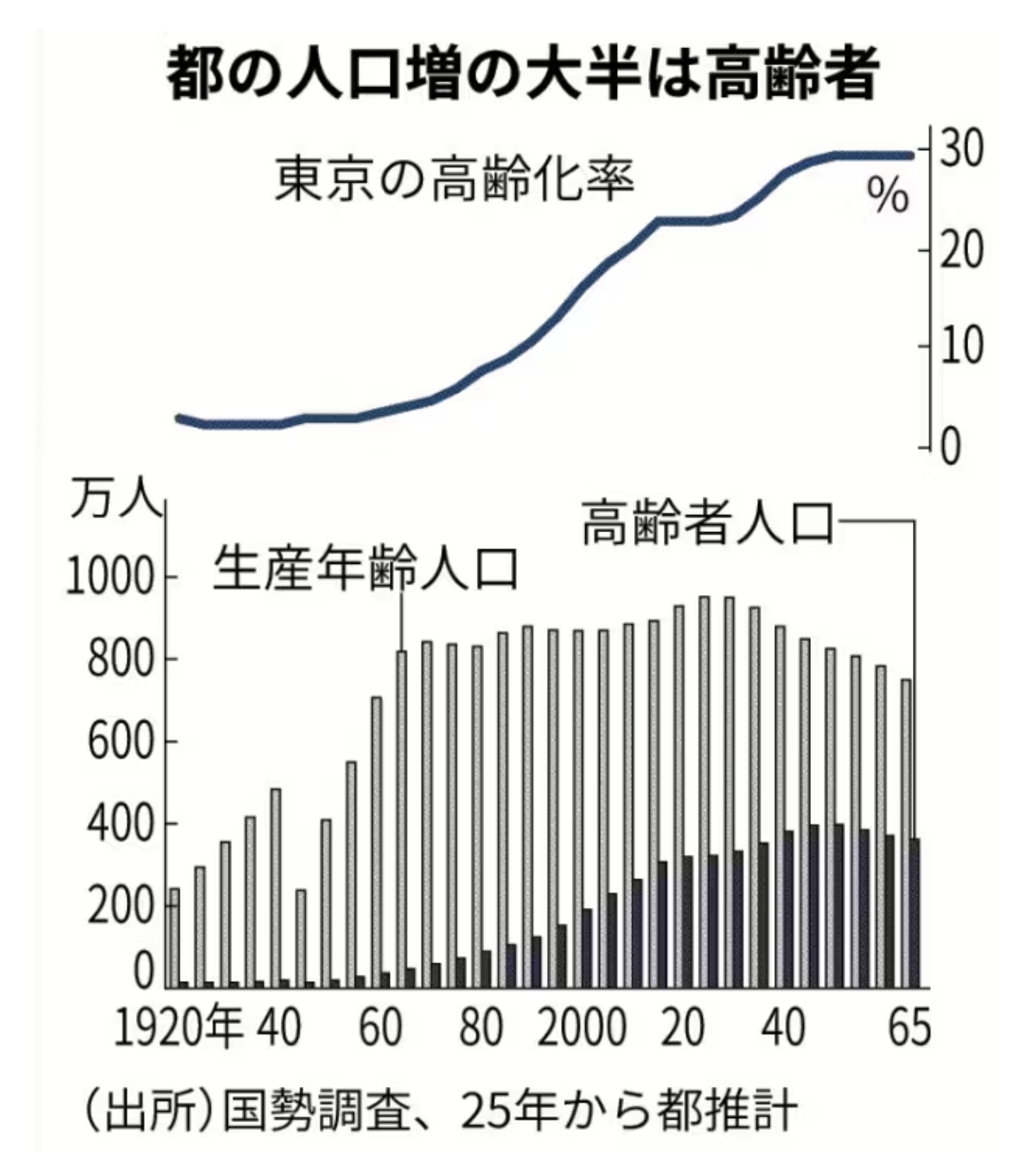 「都内の高齢化率は2065年に29.4%と2020年から6.7ポイント上がり、約3人に1人が高齢者になると予測されている。介護などのリソース不足の深刻化が懸念される。