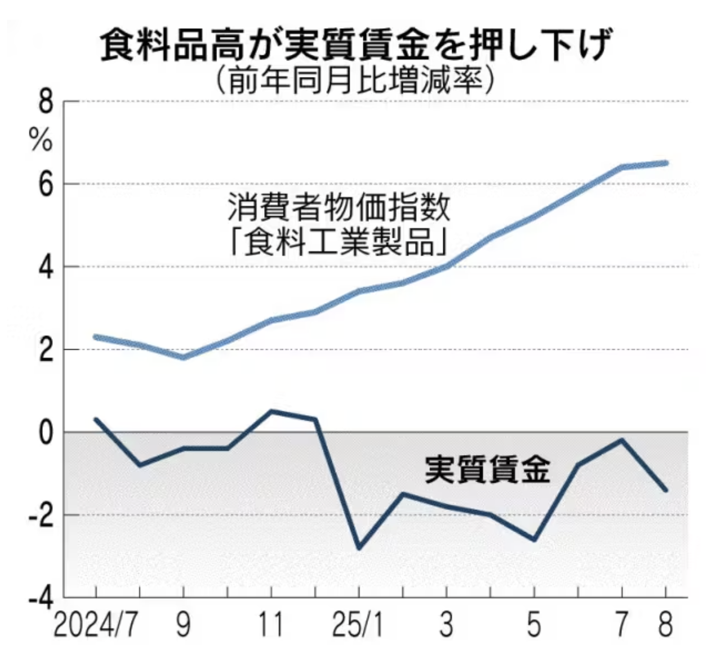 「消費者はやむをえず値上げを看過している状態。できるだけ工夫して節約する消費行動が目立つ。コメの代替として比較的安価なうどんやパンの購入量が伸びている」(イオン)