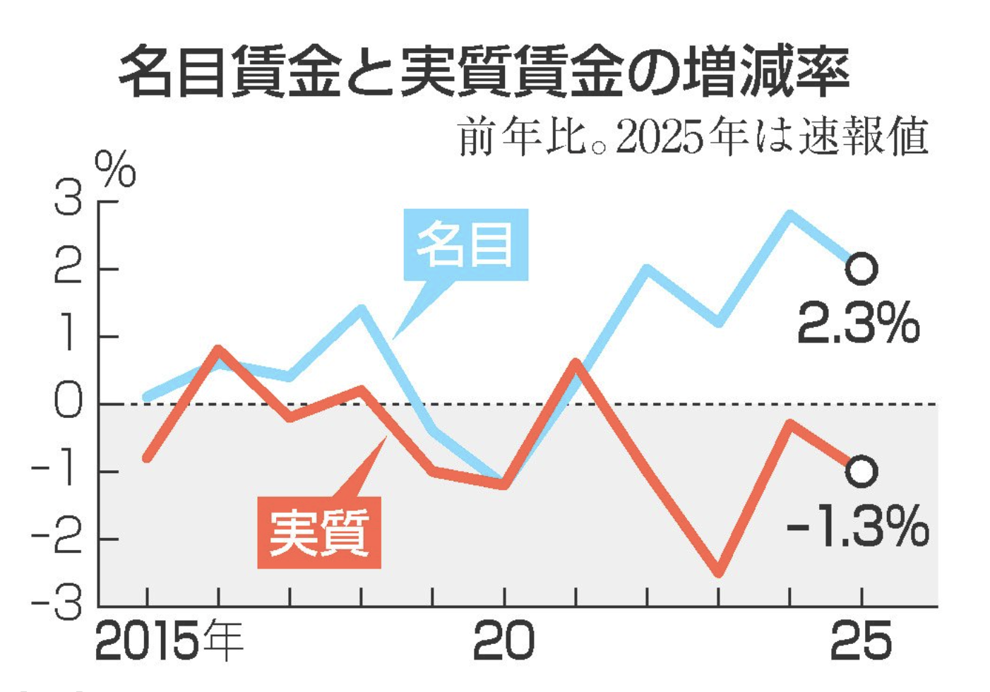 厚生労働省が発表した2025年の実質賃金は「前年比1.3%減」と4年連続のマイナスだったということです。足元の日本のインフレは激しく、かなり厳しいトレンドになってますね・・・