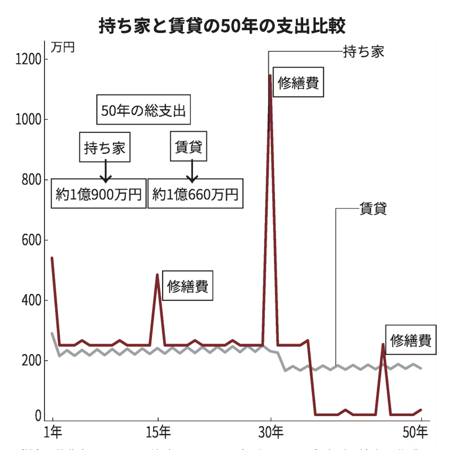 「インフレ下、持ち家・賃貸とも住み続ける基本コストは50年で1億円を超える――。専門家の協力を受けた試算で、こうした結果が明らかになった。3年前の同じ試算より2000万円程度上昇した。高齢期まで負担が続く可能性もあり、計画的な貯蓄が今まで以上に重要になる。