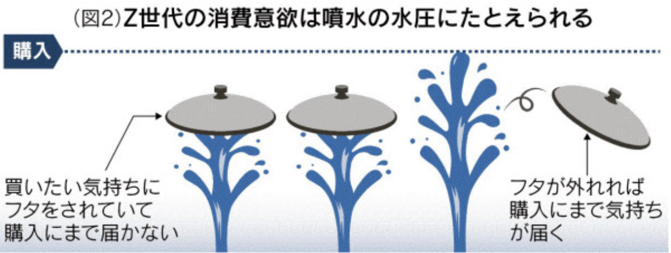 重要なのは、噴水の数を増やすこと(需要喚起)でも水圧を上げること(欲望の強化)でもなく、フタを取り外す施策である。「商品を宣伝するのではなく、消費者の背中を押す」という発想の転換が、今のマーケティングに求められる。」