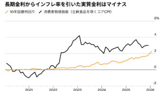 Bloomberg2026年1月20日の記事でシティグループ証券の星野昭市場部門長が、「要は実質金利がマイナスであることが円安の要因だ。為替水準に影響を与えるにはこれを是正するしかないという話になるだろう。 名目金利が物価上昇率を下回る状況...